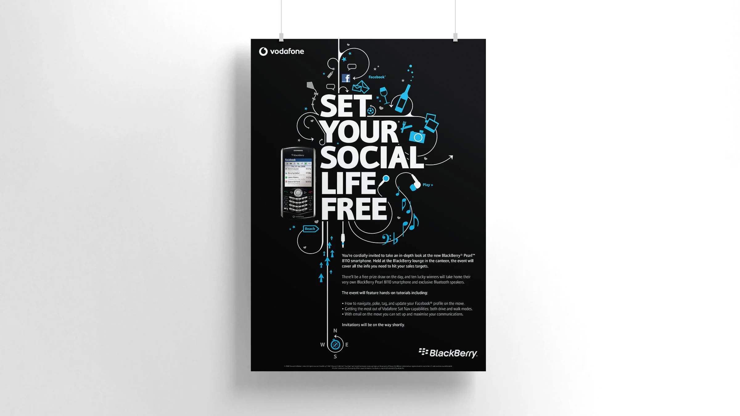 An event to coincide with the launch of the BlackBerry Pearl smartphone on the Vodafone network. We created a poster, leaflet and pull-up banners, as well as a boxed handset and speaker that was sent to a lucky 100 recipients. We worked closely with the printer to ensure that the box had a premium feel, with a black, satin card construction and that the cables were hidden discreetly away in a bespoke compartment.