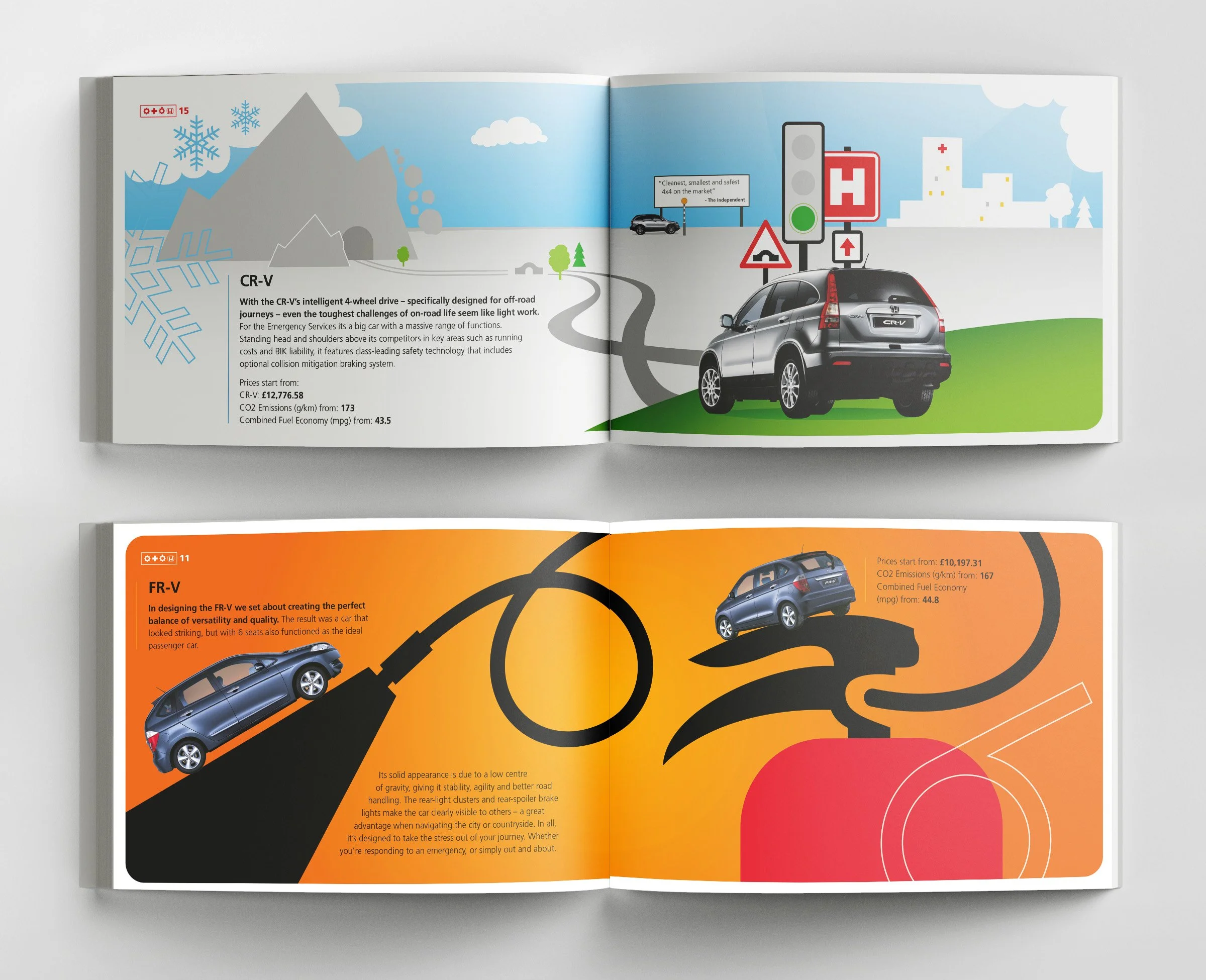 Honda’s Special Vehicle Operations team supplies tailored cars and motorbikes to the emergency services. They wanted a stand-out DM piece that would be kept somewhere visible for future reference by the fleet managers.